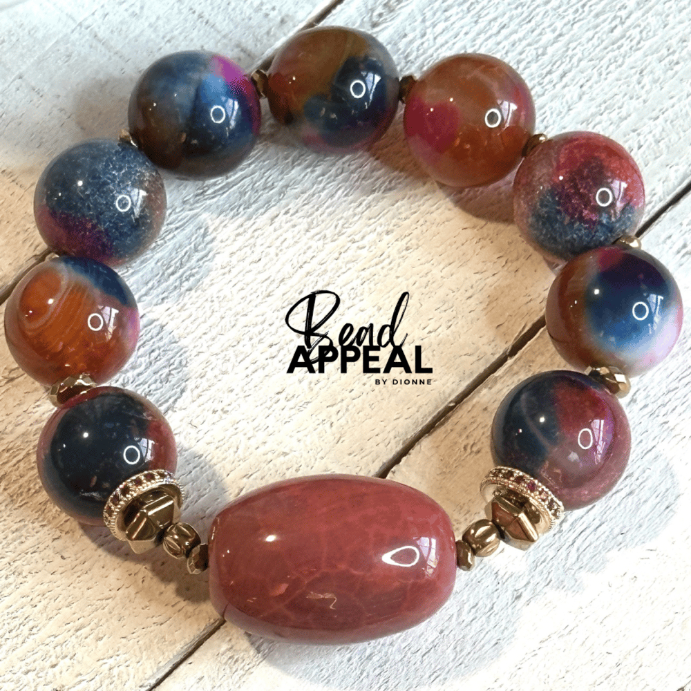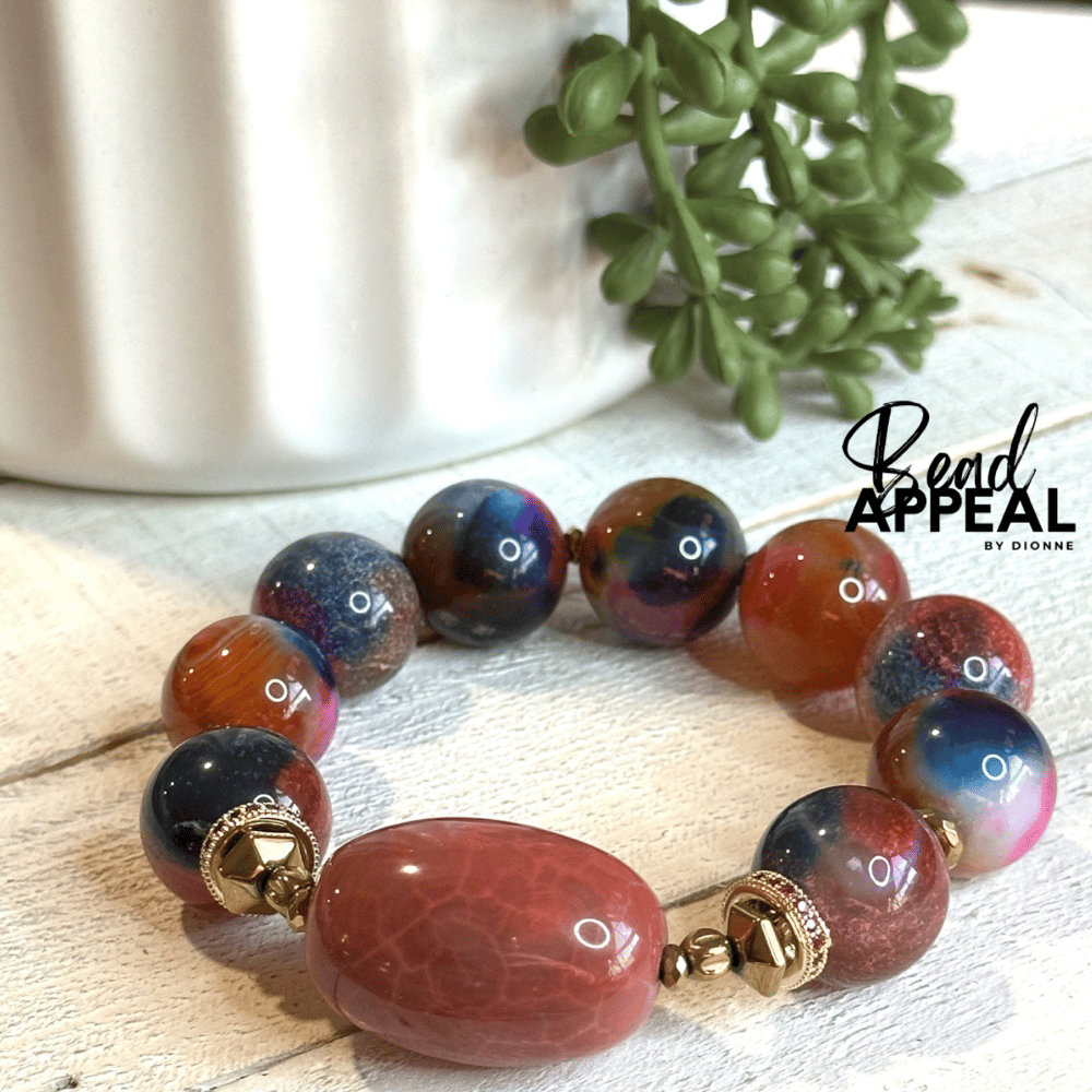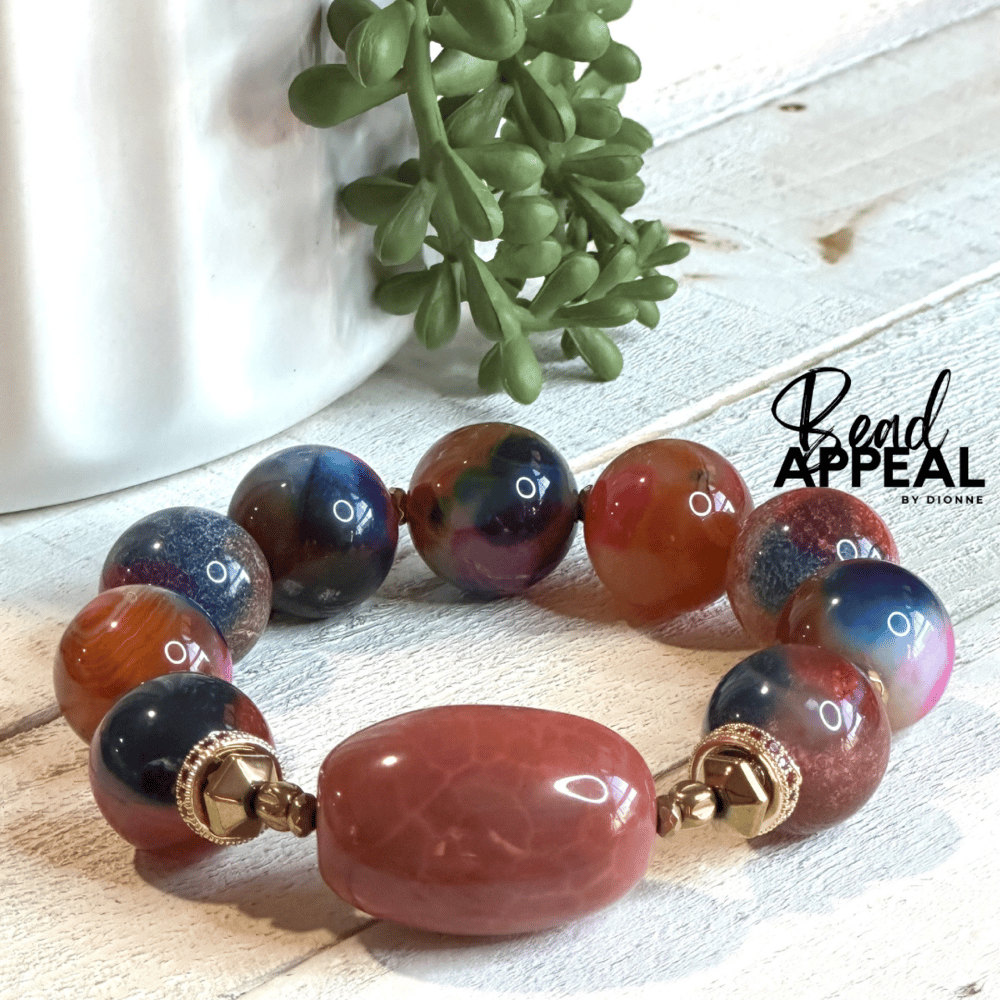 16mm Agate Bead Bracelet with Agate Centerpiece. Accented with CZ Spacers and Hematite