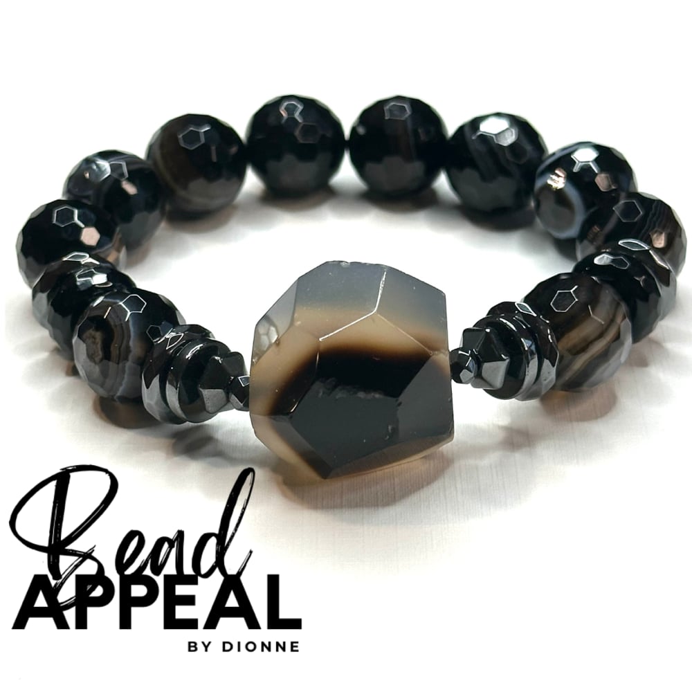 Agate Bracelet Set with Agate Centerpieces. Bracelets are accented with CZ and Hematite.