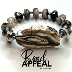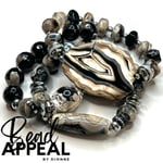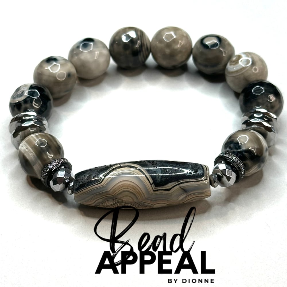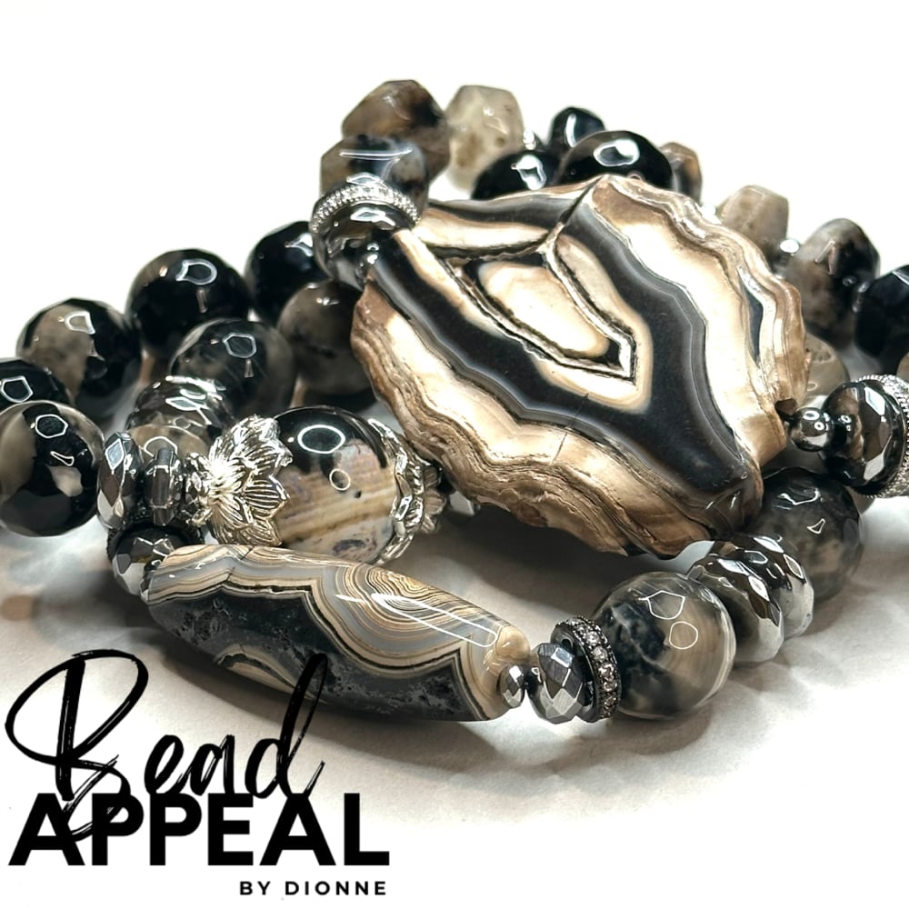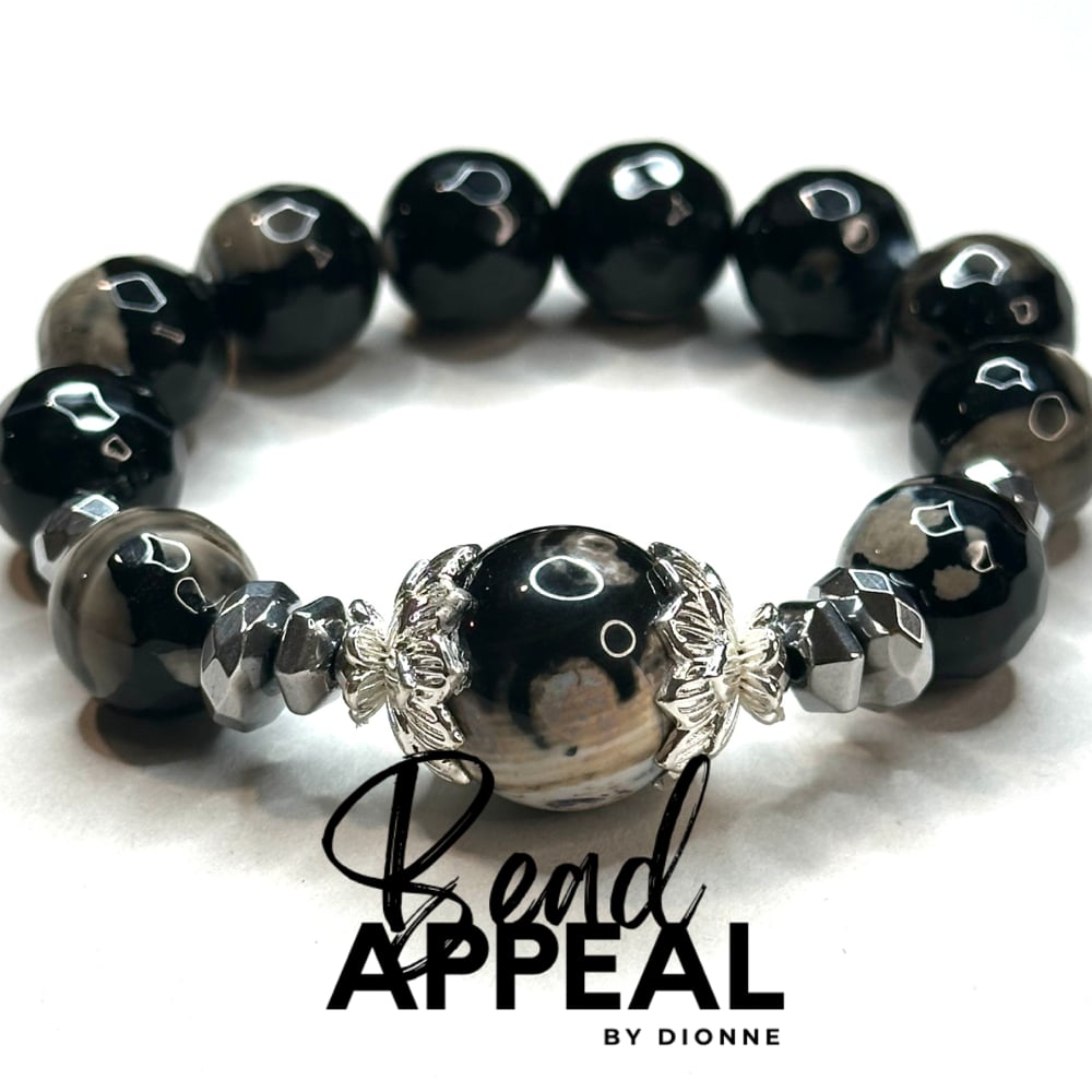 Fire Agate Bracelet Set with Agate Centerpieces. Bracelets are accented with CZ and Hematite.