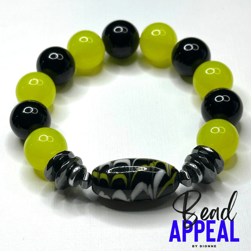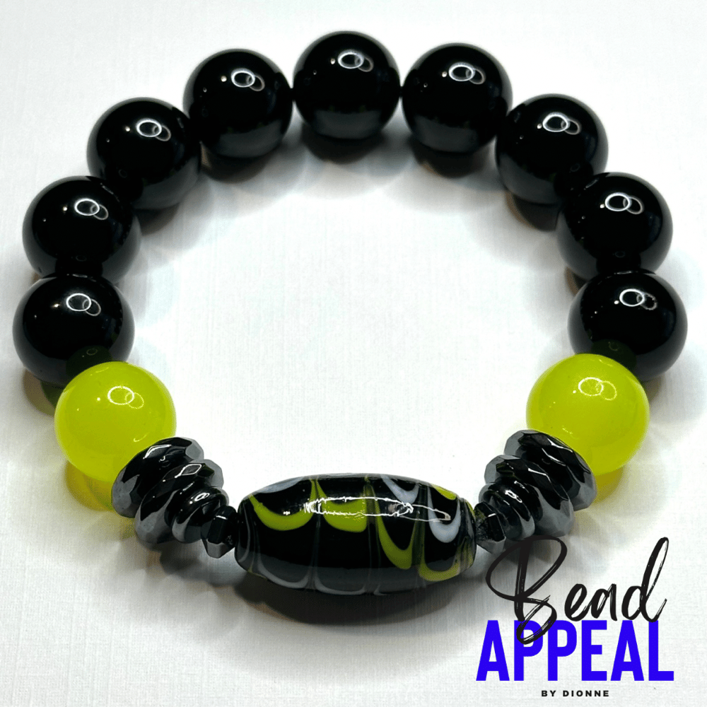 14mm Agate Beads with Glass Focal Bead. Bracelets Accented with Hematite.