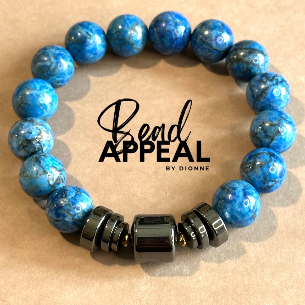 Blue African Turquoise 12mm Bead Bracelet Accented with Hematite