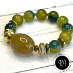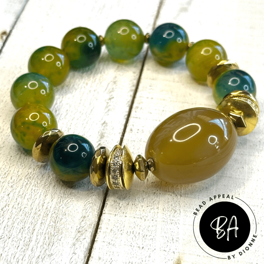 Bold 14mm Agate Bead Bracelet with Large Agate Focal Bead Accented with Hematite and CZ