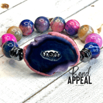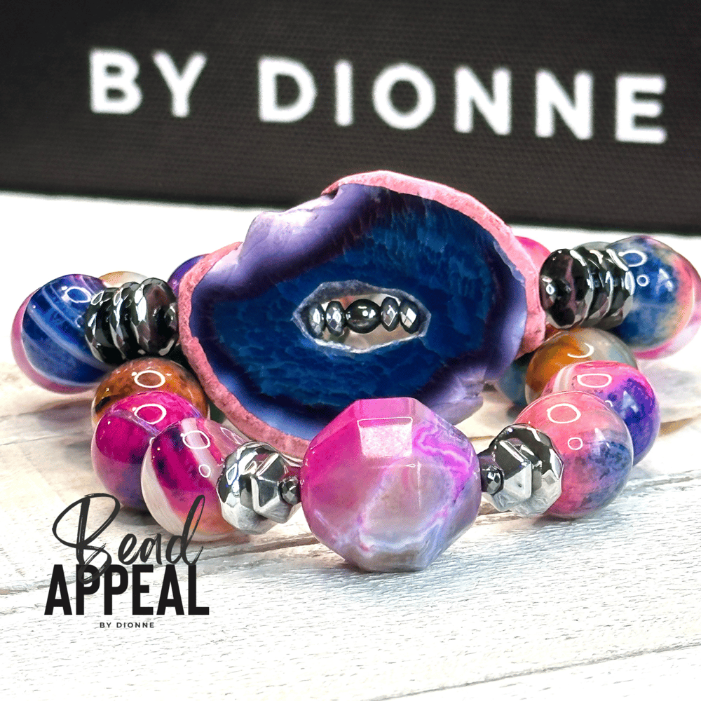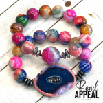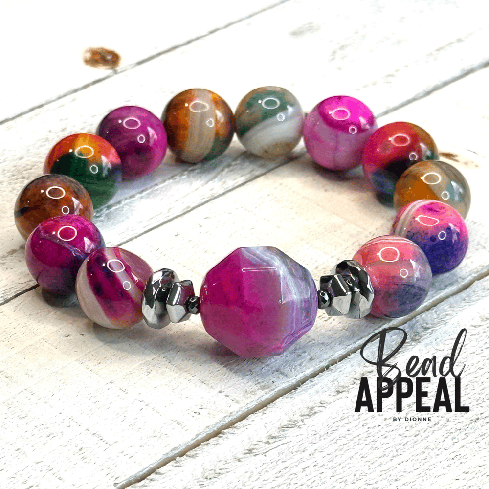 14mm Tie-Dye Agate Bead Bracelets with Agate Centerpieces and Hematite Accents