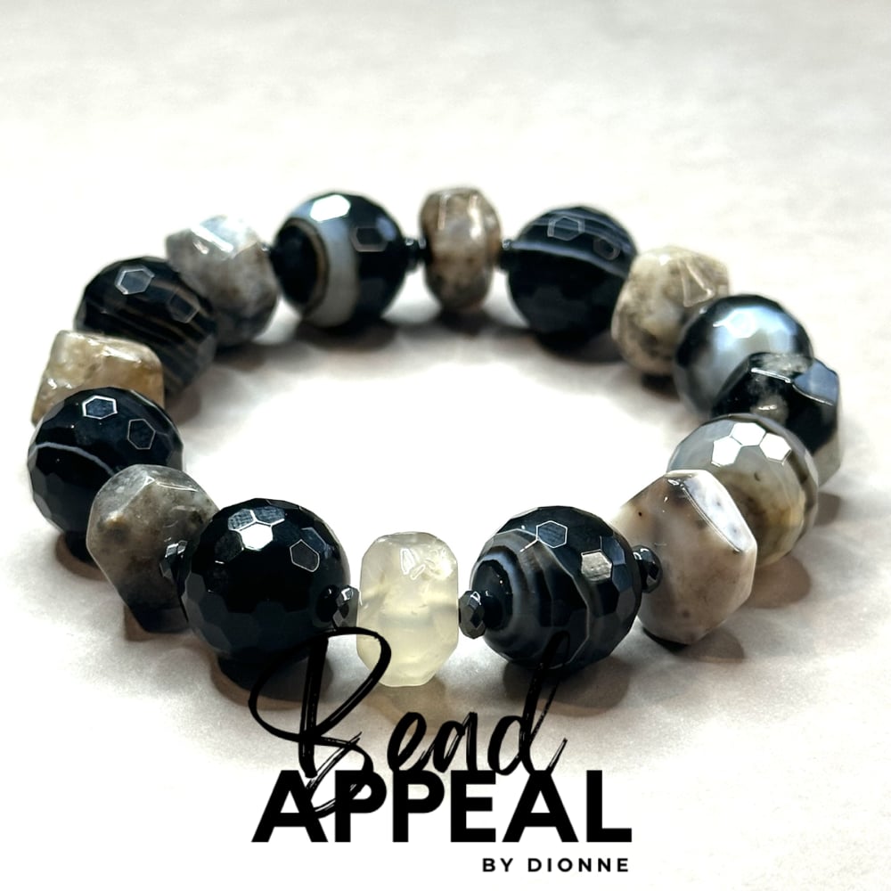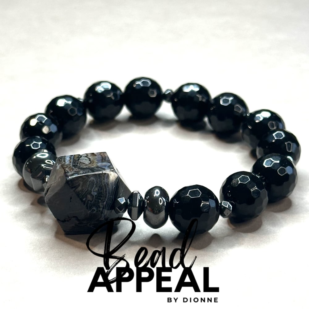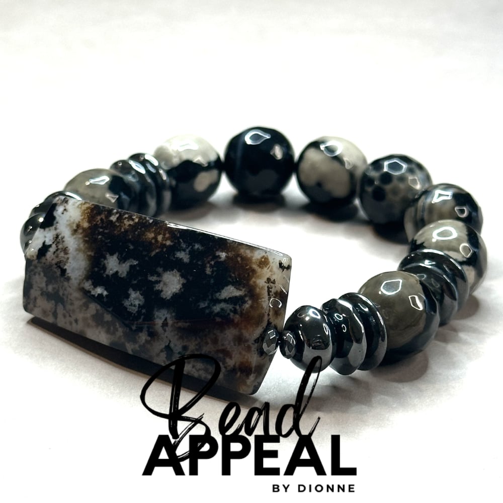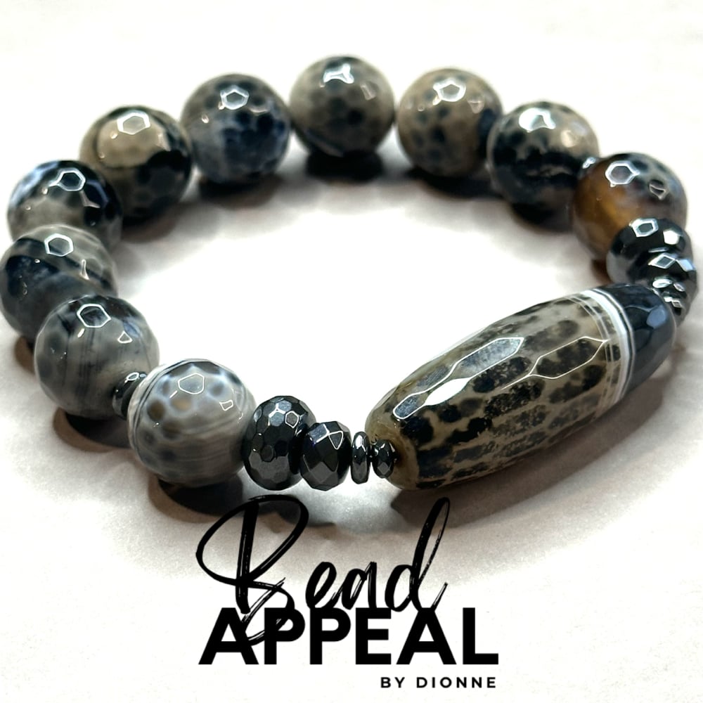 5pc Agate Bead Bracelet Set. Mixture of 14mm & 12mm Beads. Accented with Hematite