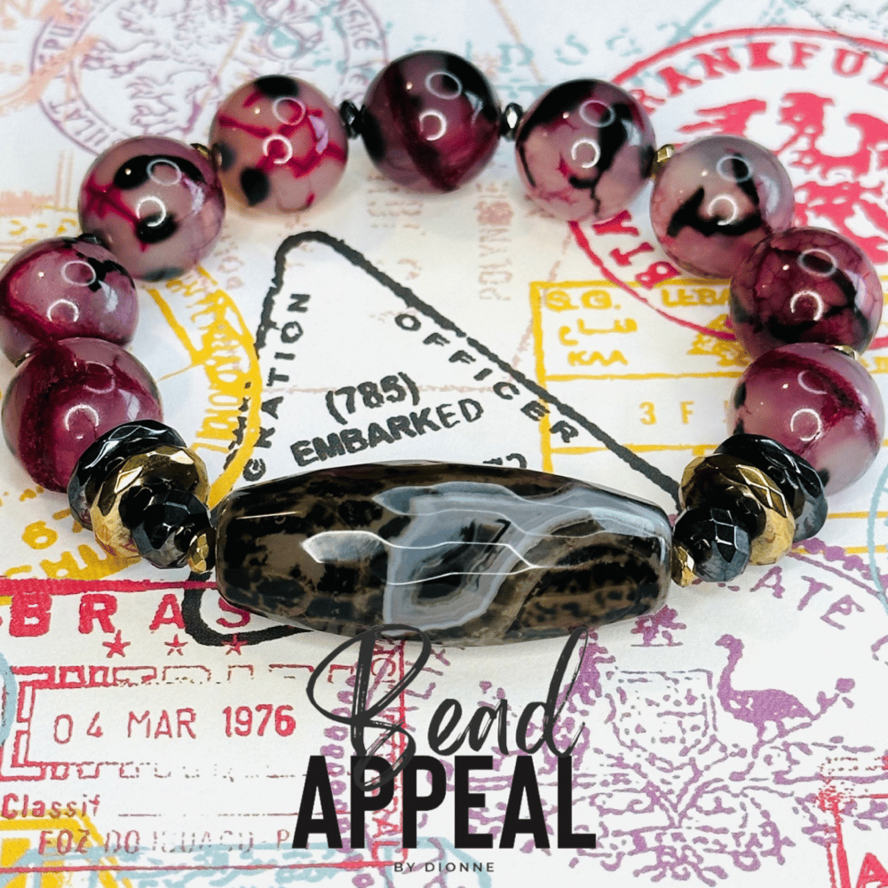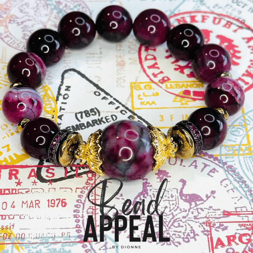 14mm Agate Bead Bracelet Stack. Accented with Agate Focal Beads, CZ and Hematite