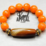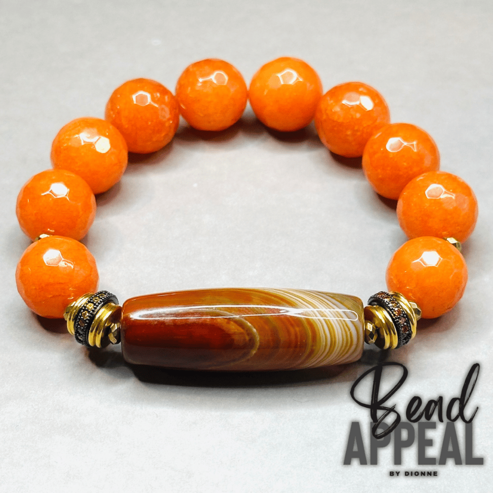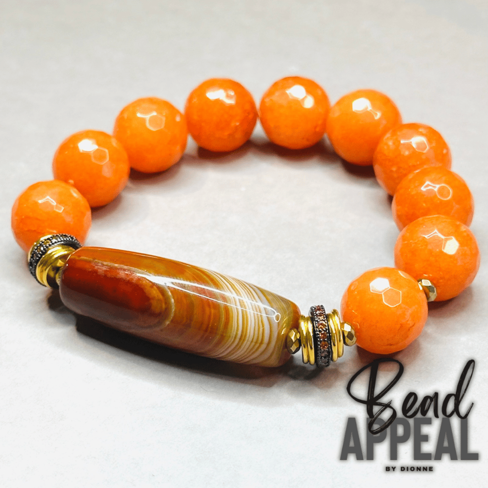 14mm Faceted Agate Bead Bracelet with Gorgeous Agate Focal Bead. CZ and Hematite Accents