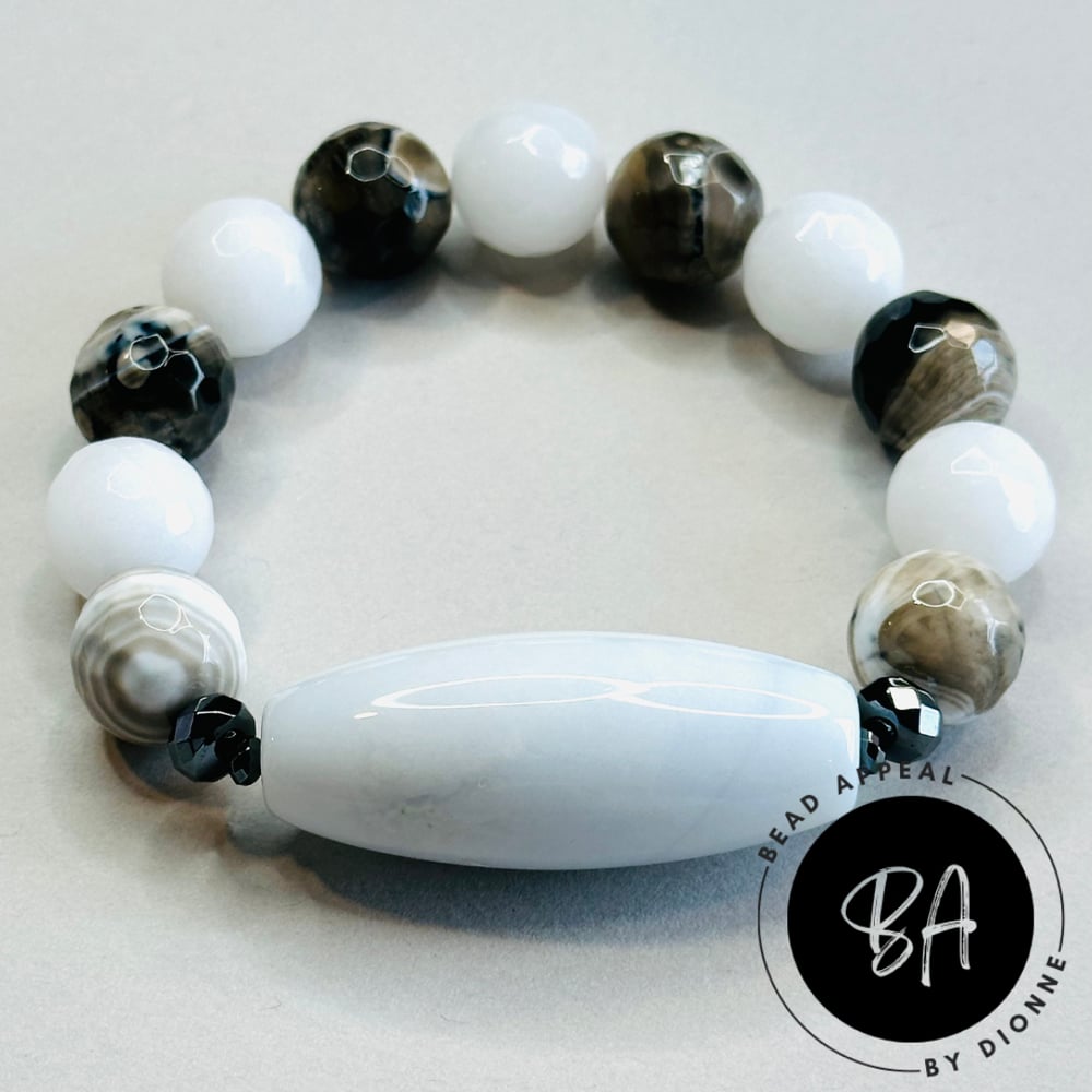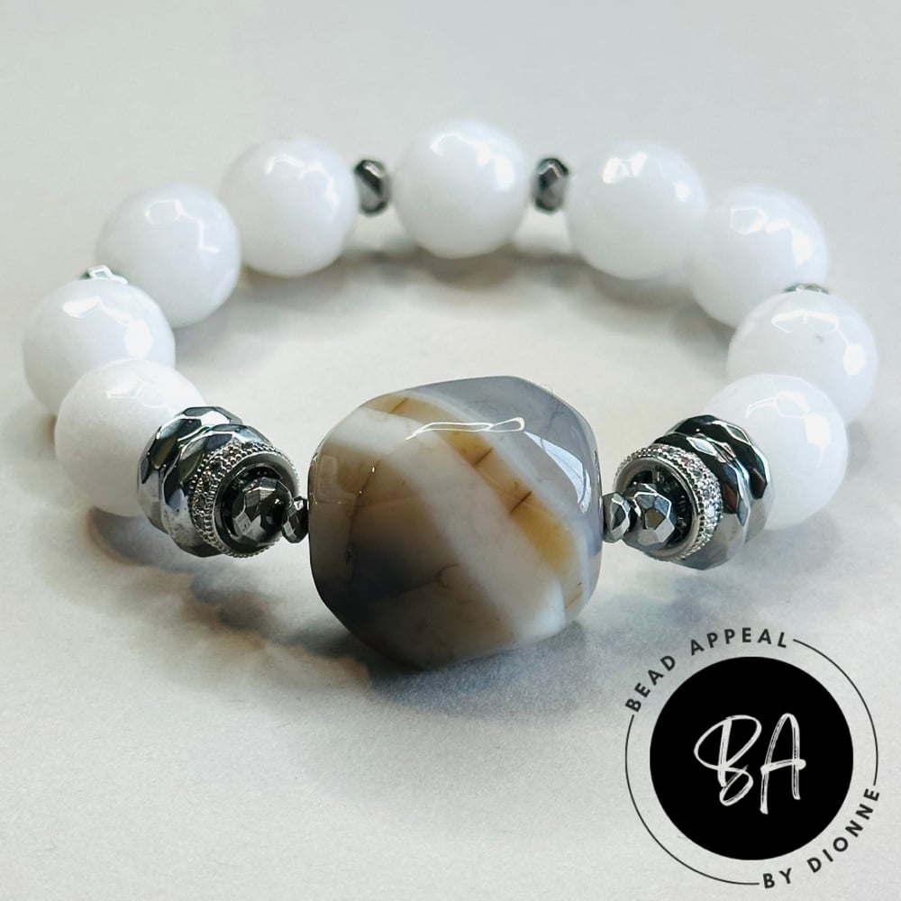 14mm Agate Faceted Bead Bracelet Set Accented with Agate Focal Beads, CZ and Hematite