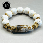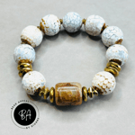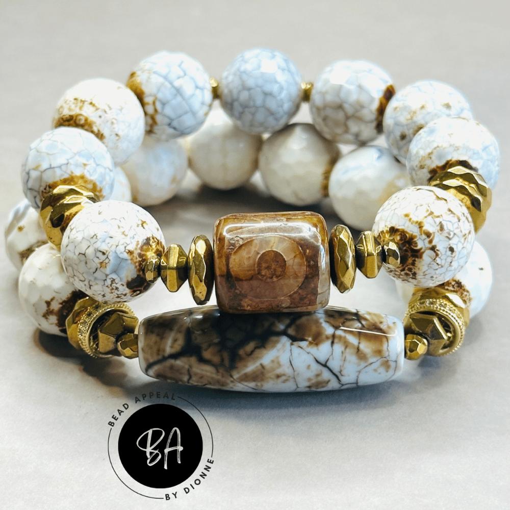 Fire Agate Bead Bracelet Set. Tibetan and Fire Agate Centerpieces. CZ and Hematite Spacers.