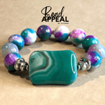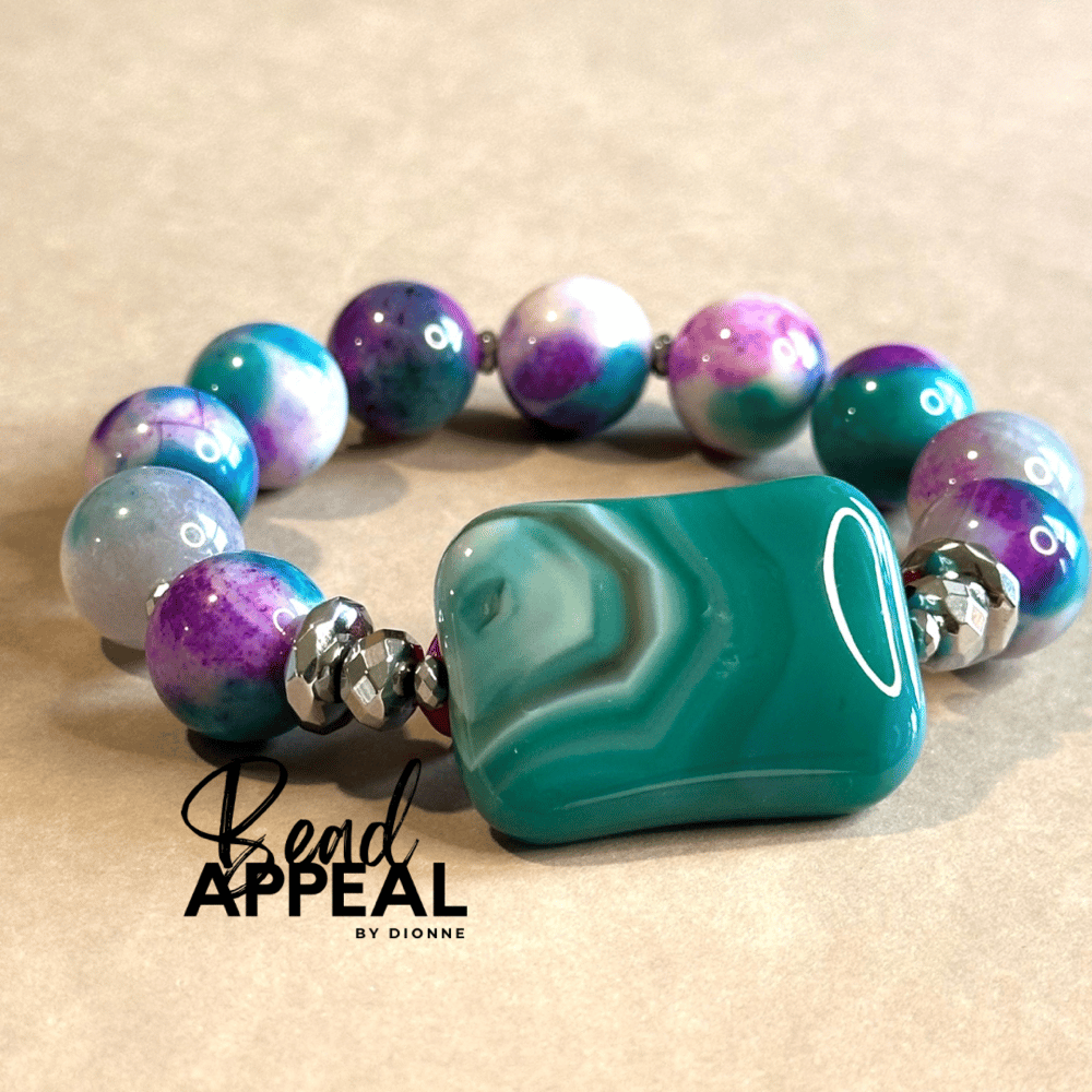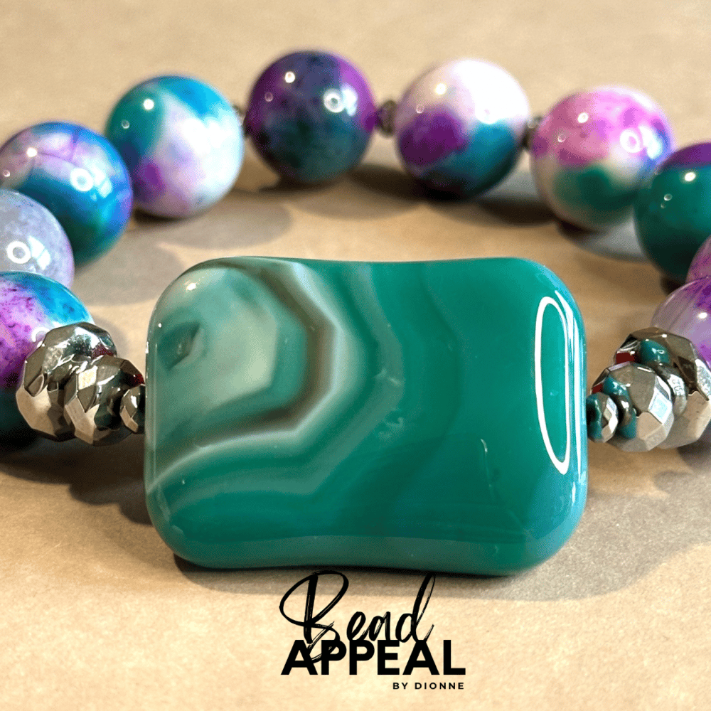 14mm Multi-Colored Agate Bead Bracelet Accented with Hematite