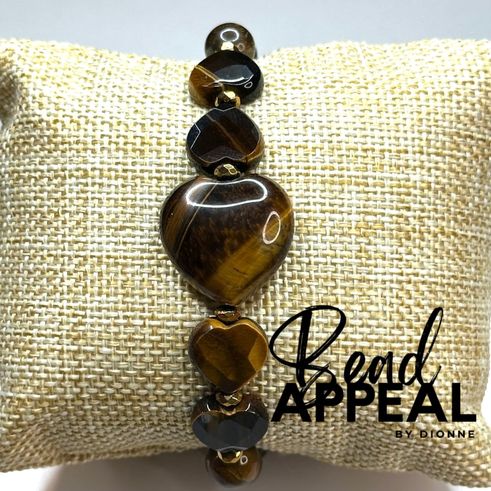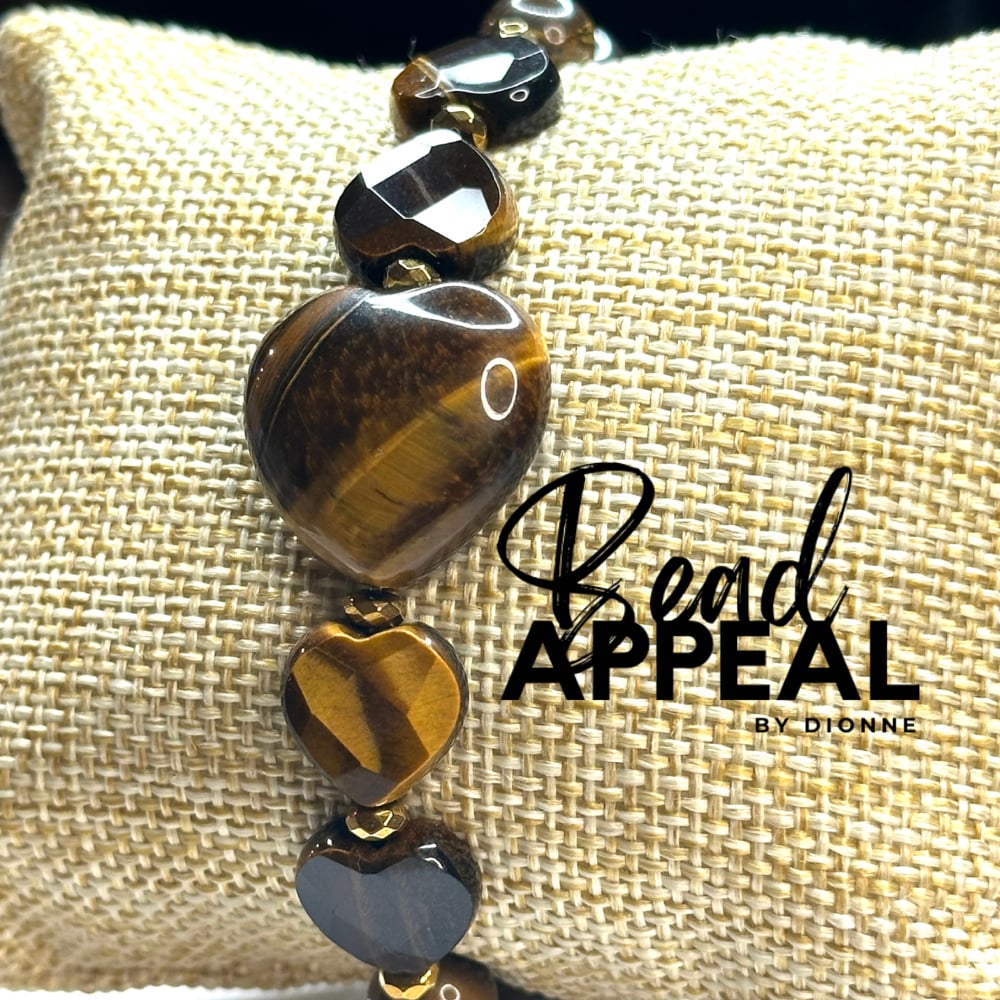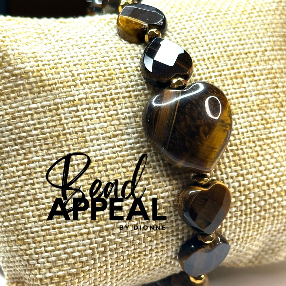 Tiger’s Eye Hearts Accented with 8mm Beads and Hematite